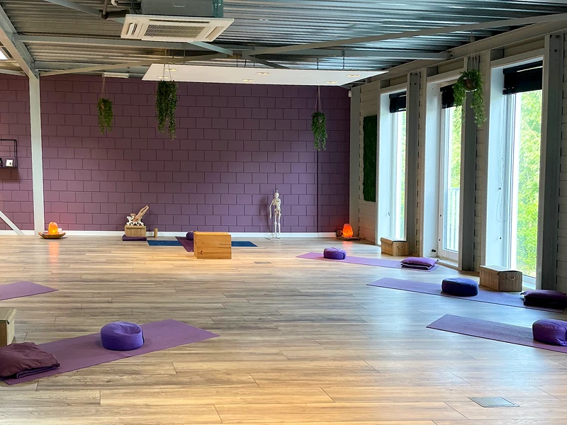 De studio heeft een warme, gezellige sfeer met een rustgevend uitzicht op groen en bomen – ideaal om volledig tot rust te komen en je deelnemers te inspireren. Dankzij de airco is het altijd aangenaam, ook op warme dagen.